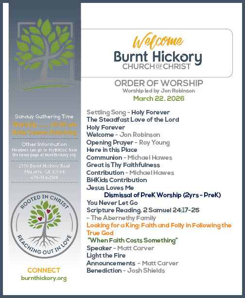- Click here to view the Order of Worship (OOW) for BH Marietta.